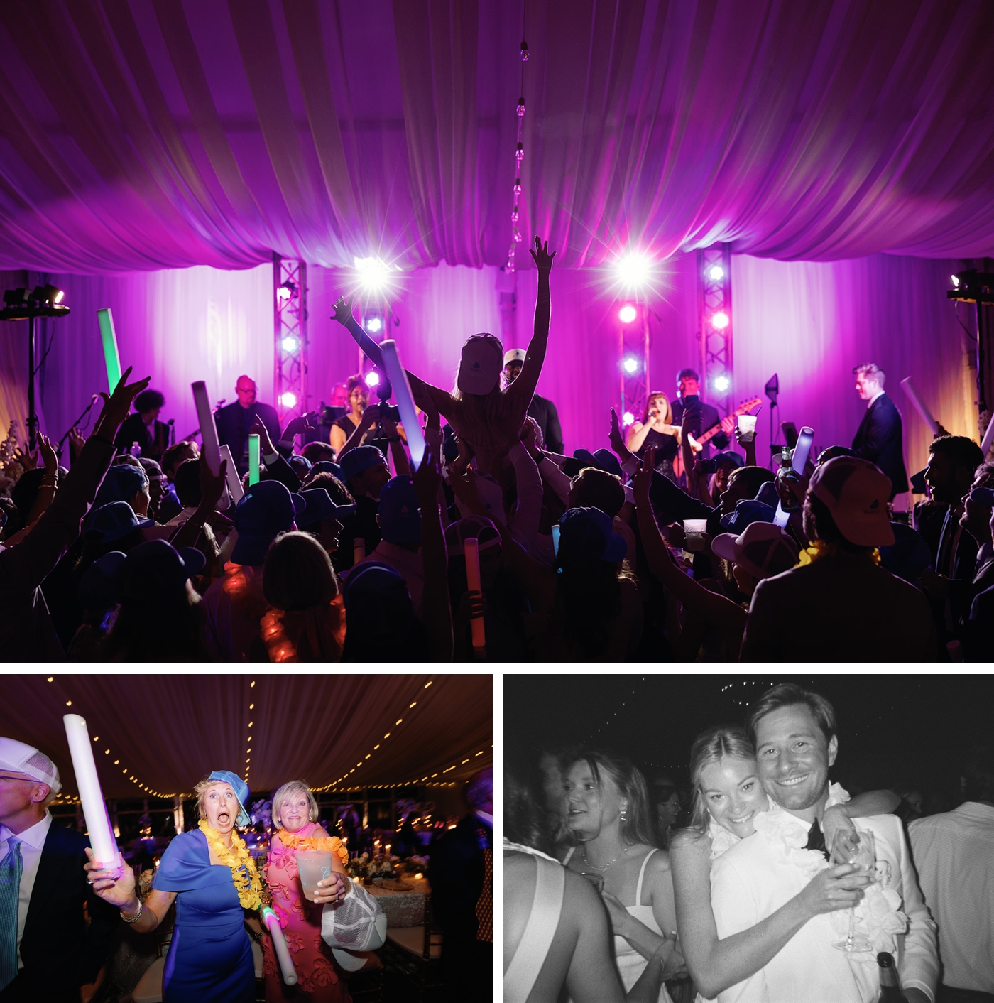The Love and Happiness Band playing for a wedding reception at Horseshoe Bay Resort in Texas, with the guests dancing Evening reception with a live band, and a private last dance between a couple